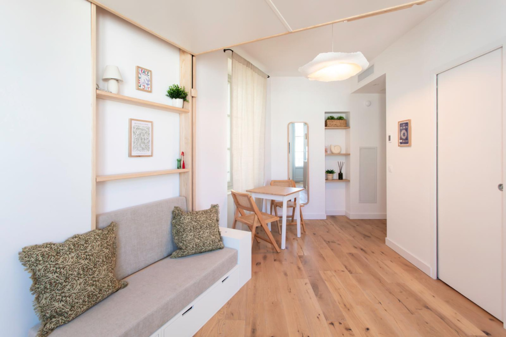 Réalisation client : Dklé avec banquette Brick composées de rangements ! Optimiser l’Espace avec un Lit au PlafondTransformer un salon