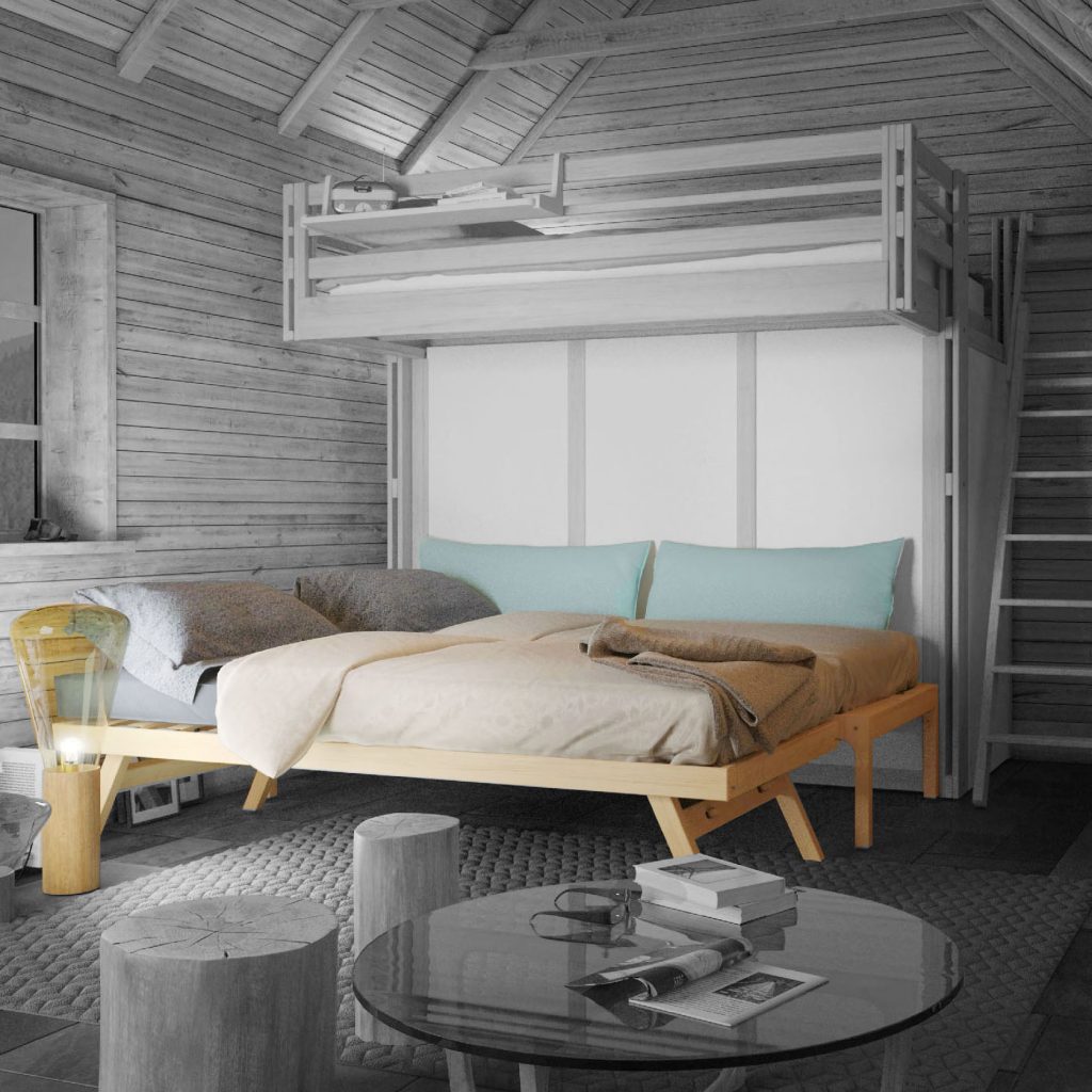 Avec ses lits superposés/mezzanine Espace Loggia offre plus de latitude pour organiser son espace, à la fois en se le réappropriant et en le délimitant.