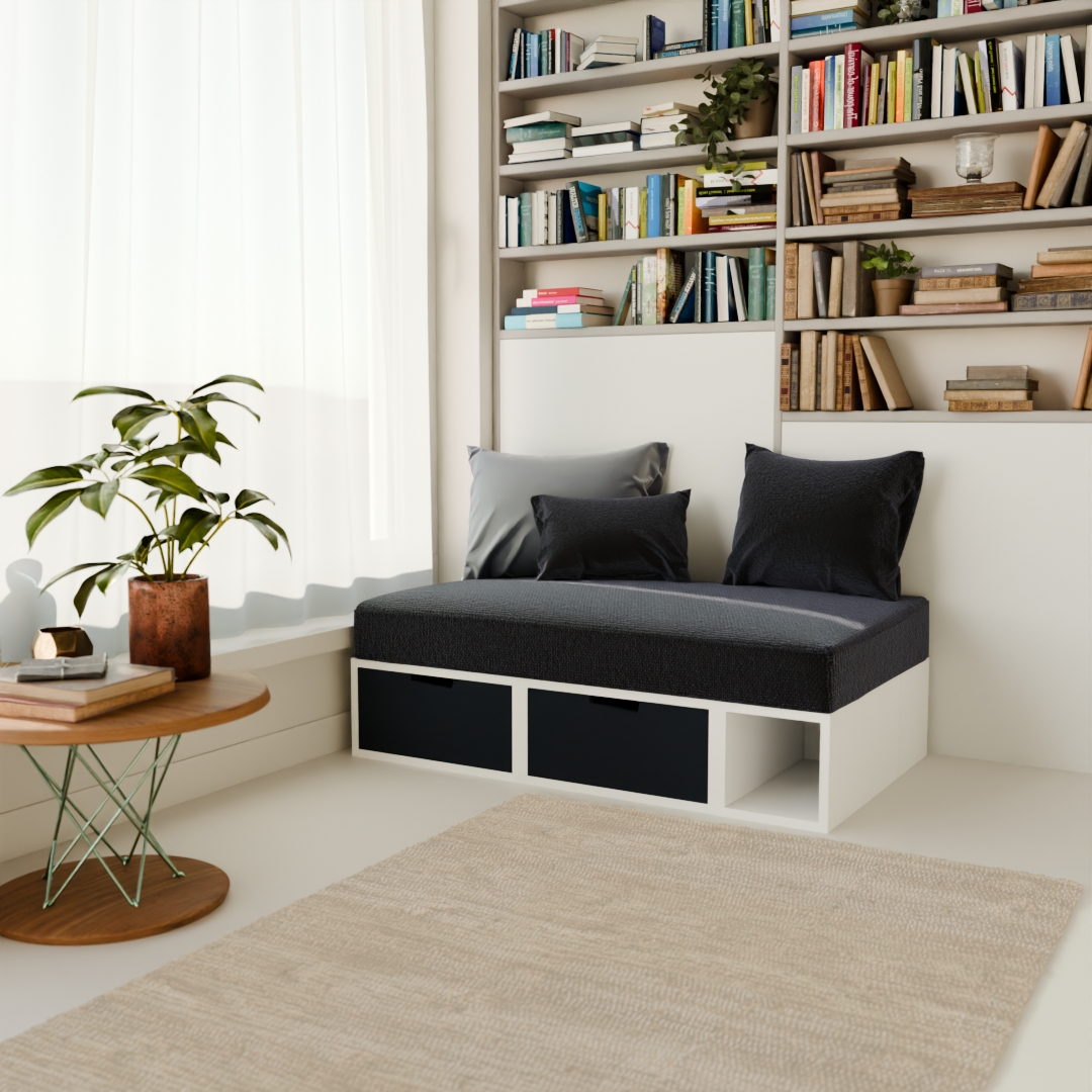 Les rangements sont accessibles, robustes et pensés pour une utilisation quotidienne. Brick s’adresse à ceux qui recherchent du mobilier gain de place, fonctionnel et discret, sans compromis sur la qualité.