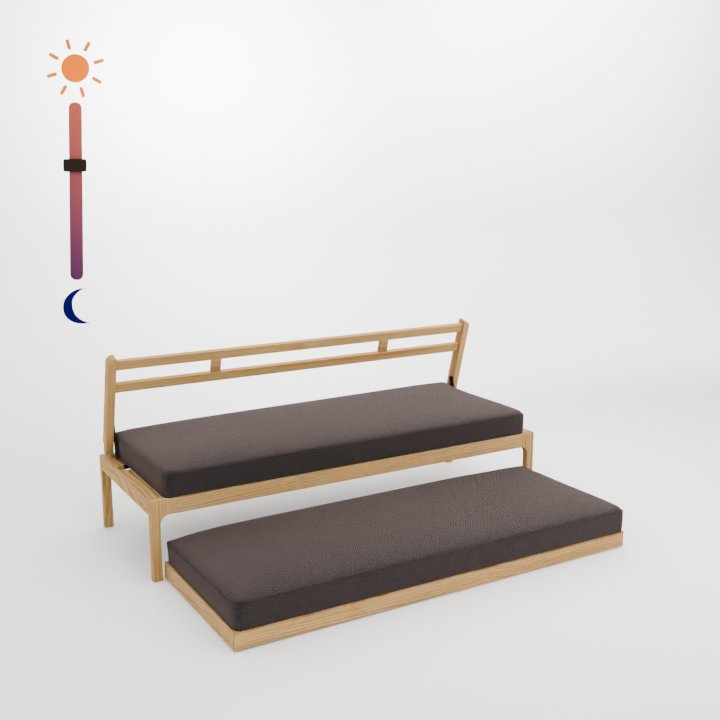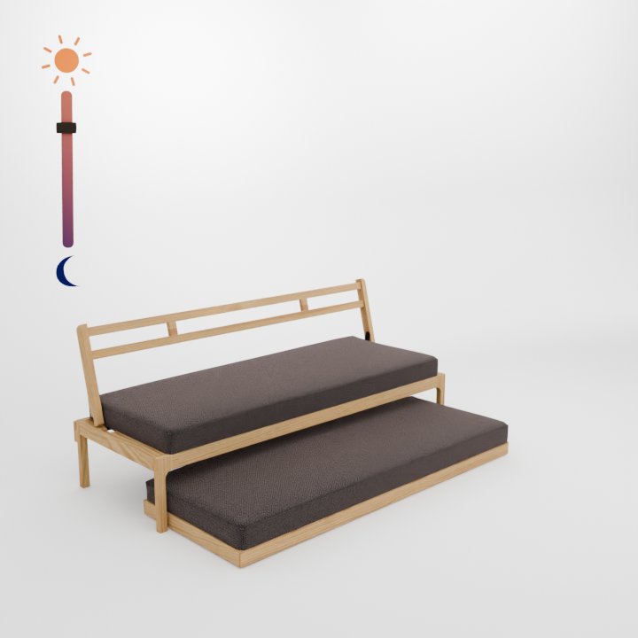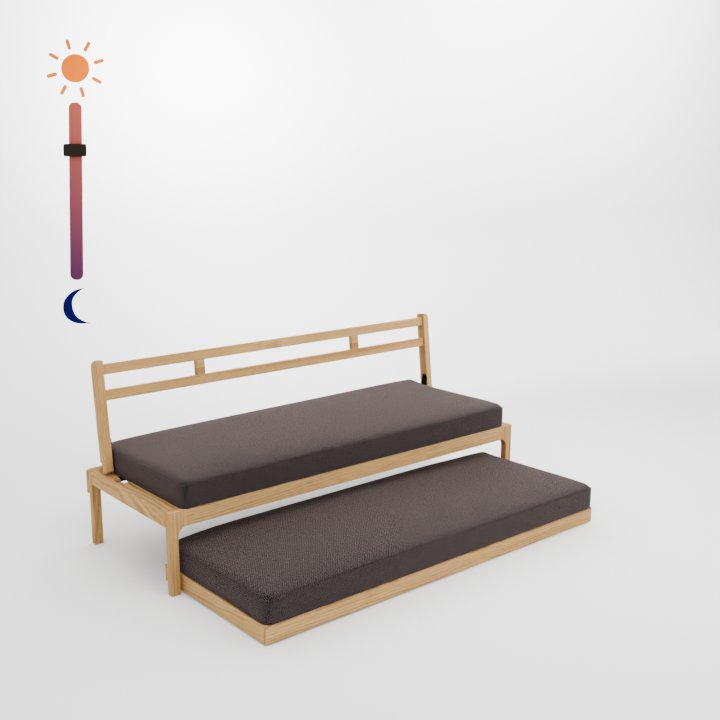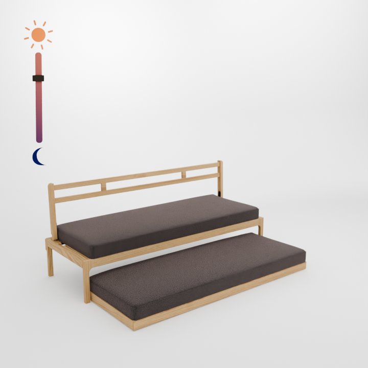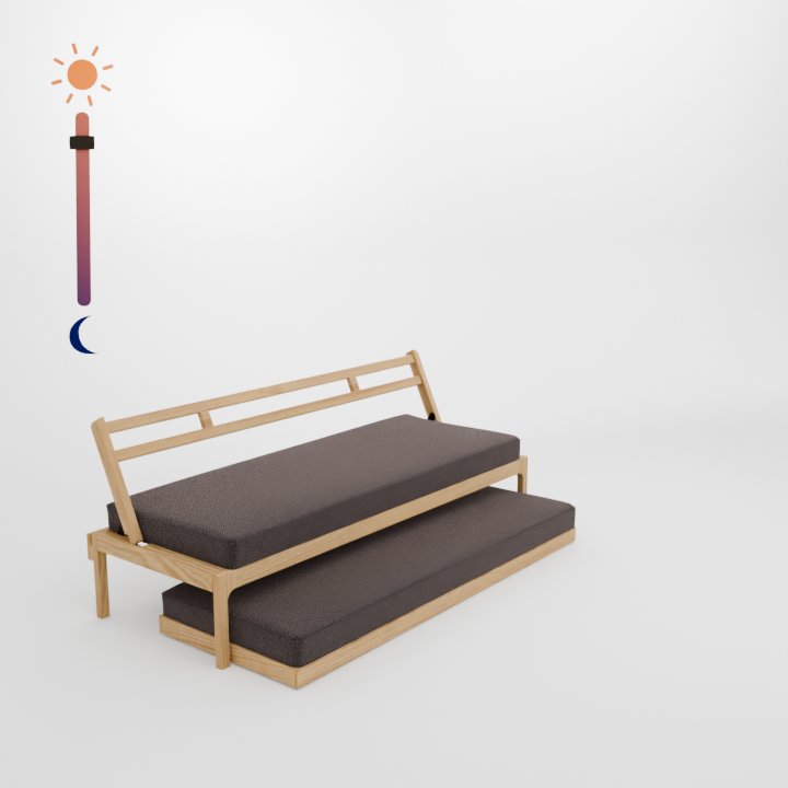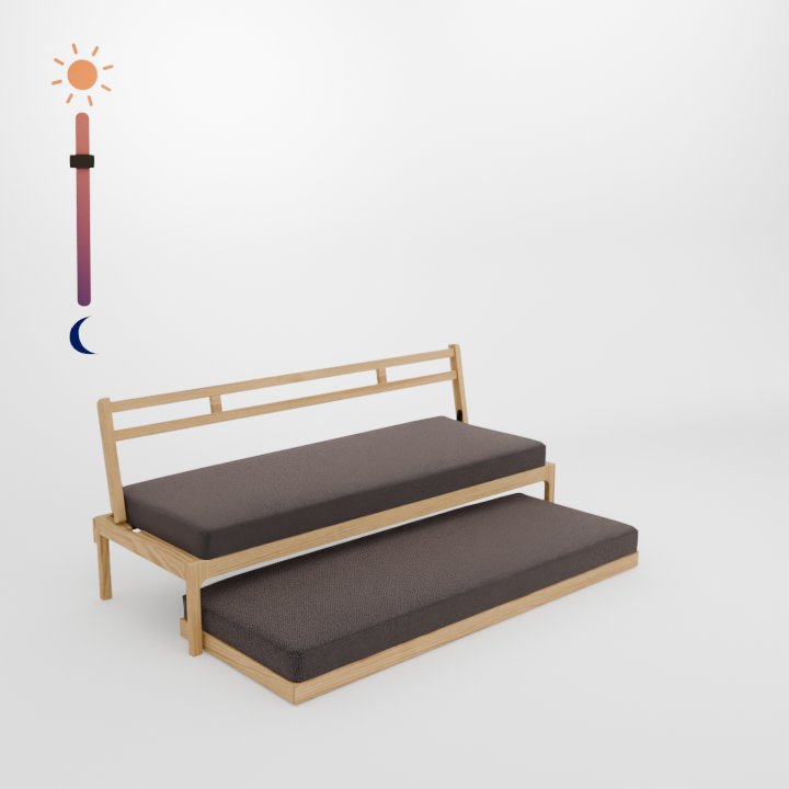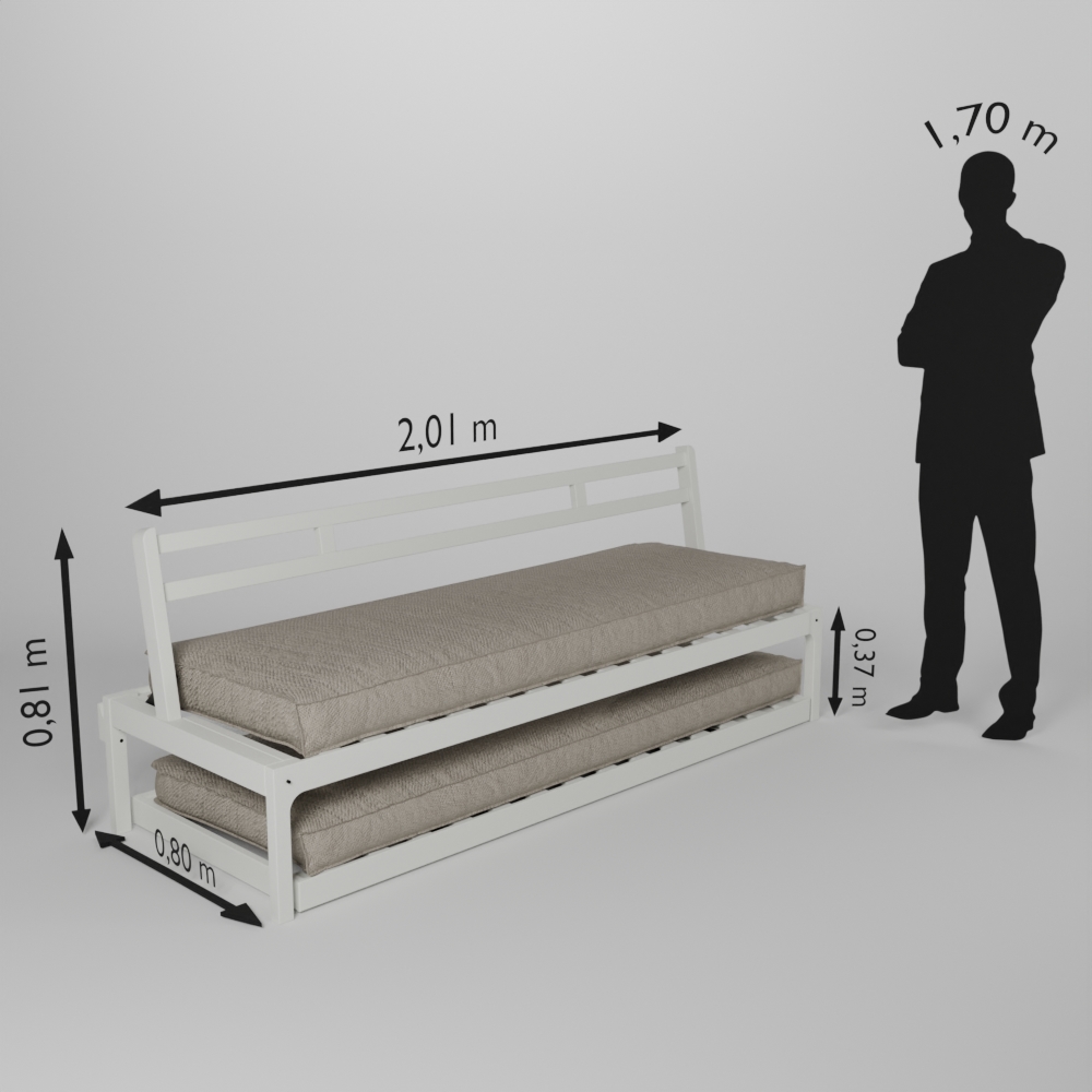 Optimisez votre logement avec ce canapé gigogne qui se transforme en un lit double ou en deux lits simples en cas de besoin.
