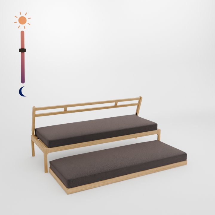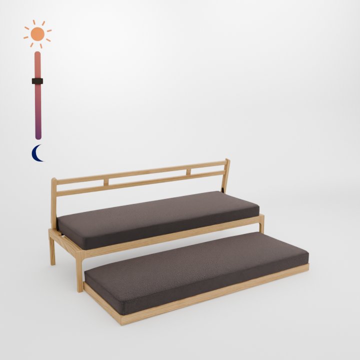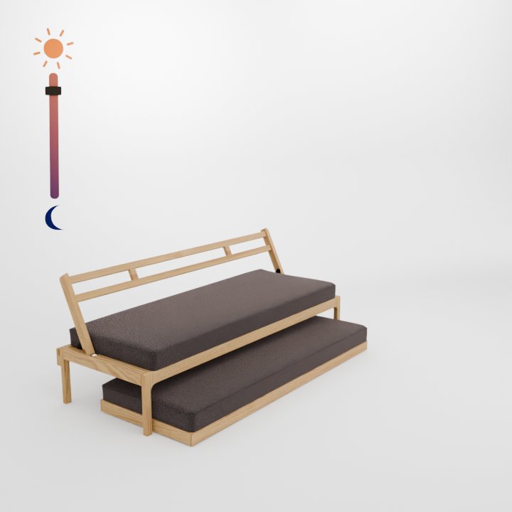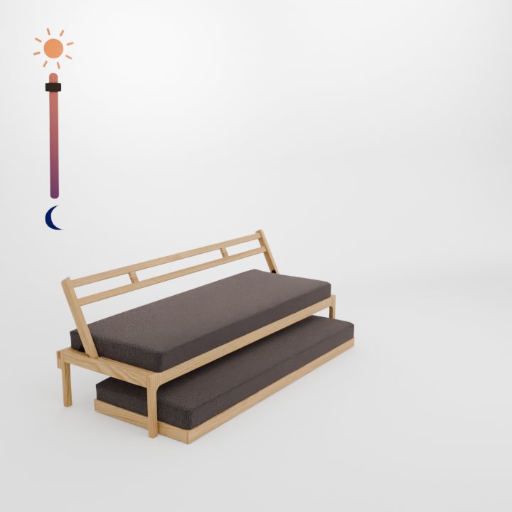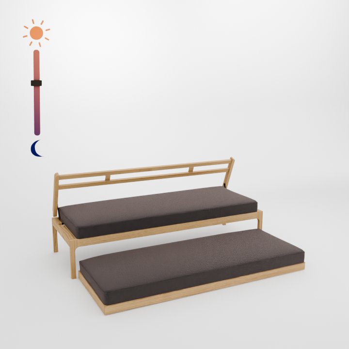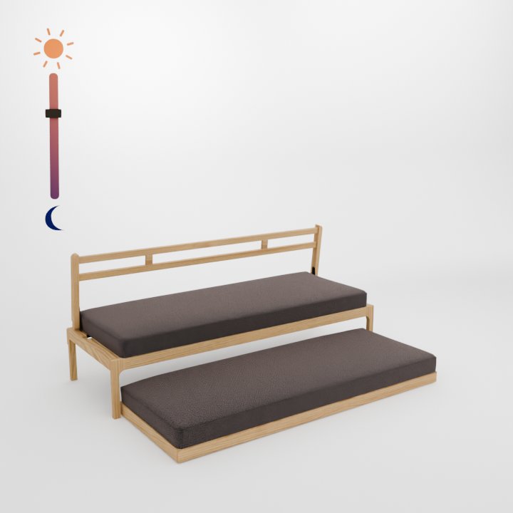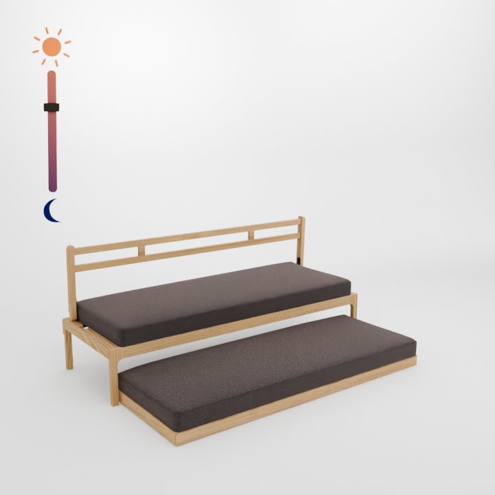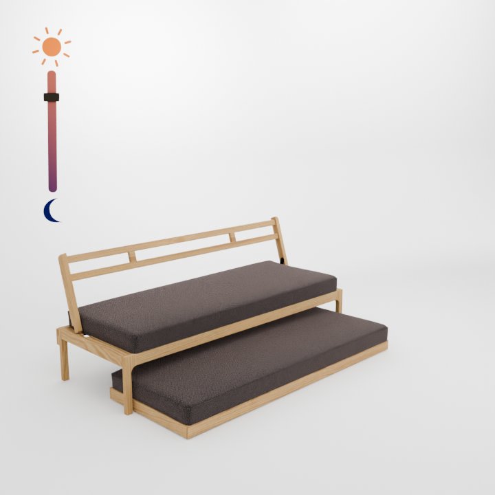 Optimisez votre logement avec ce canapé gigogne qui se transforme en un lit double ou en deux lits simples en cas de besoin.