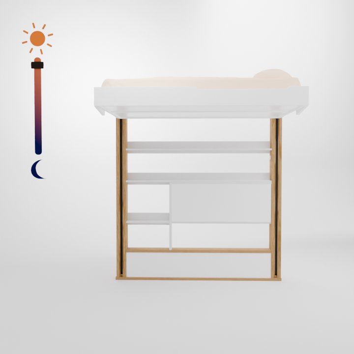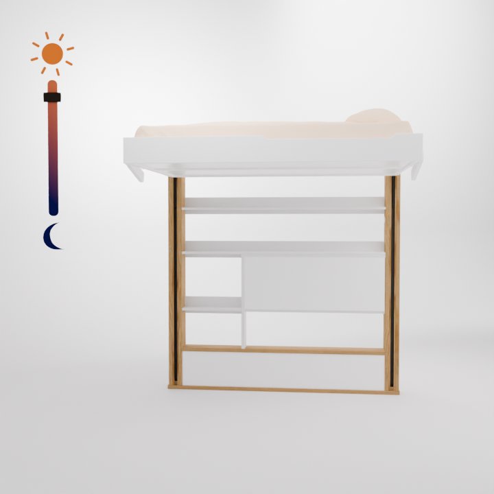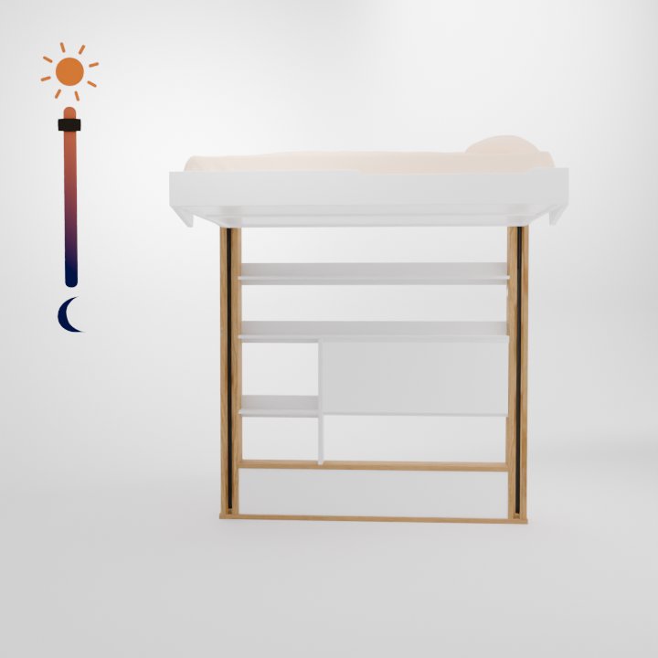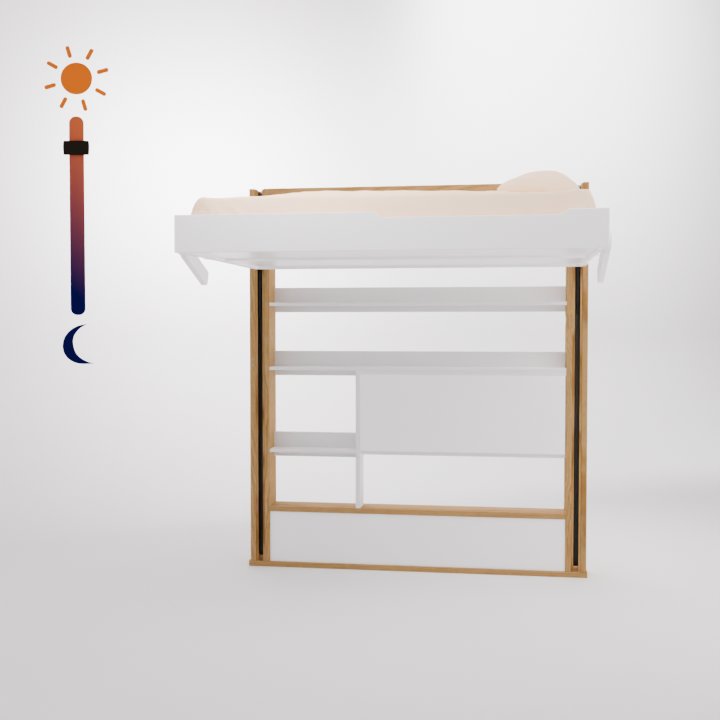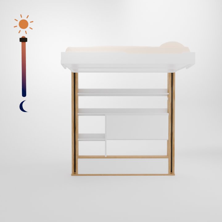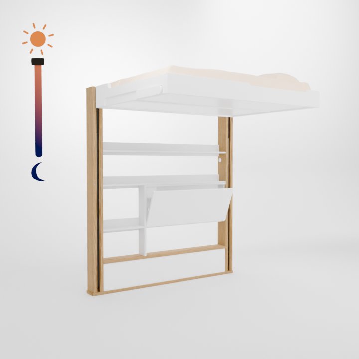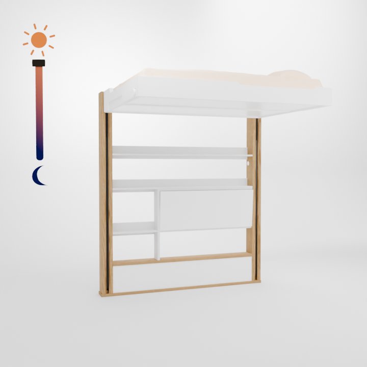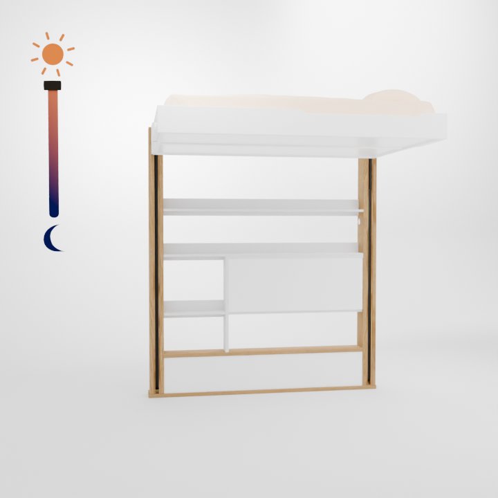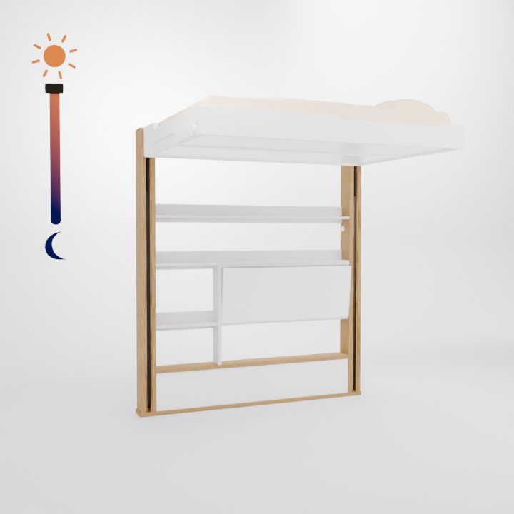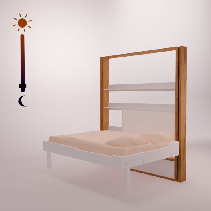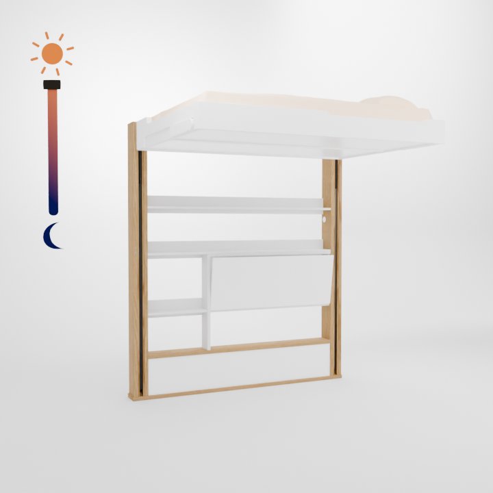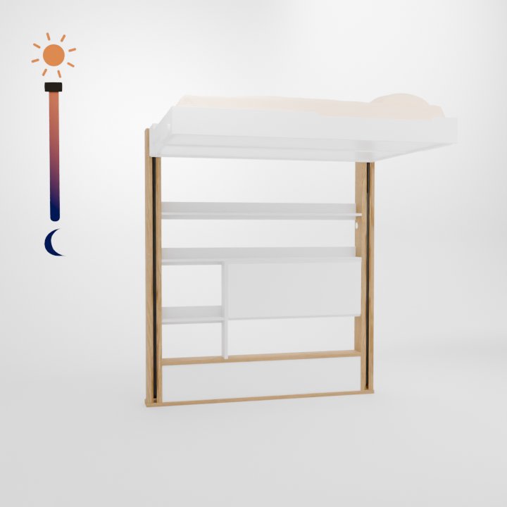 Une fois relevé, le lit escamotable éclectique libère un espace au sol entièrement modulable. Cette surface dégagée peut accueillir un bureau, un coin lecture, un espace jeux ou un canapé selon vos besoins. Grâce à sa conception polyvalente, il permet de transformer une même pièce en espace multifonction sans compromis sur le confort.