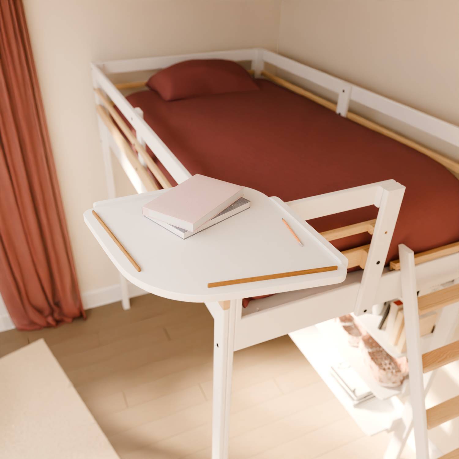 L’étagère d’angle pour lit mezzanine permet d’exploiter les angles de votre lit tout en gardant vos essentiels à portée de main. Elle s’installe directement sur la structure du lit, sans encombrer le sol. Ce type de rangement suspendu est idéal dans les petits espaces, notamment dans les studios ou les chambres d’enfants.