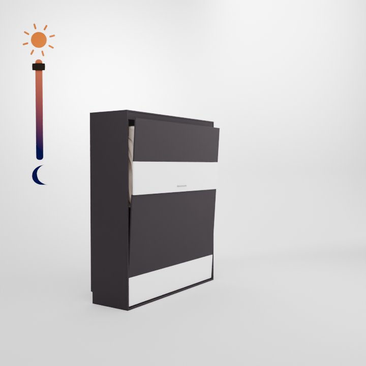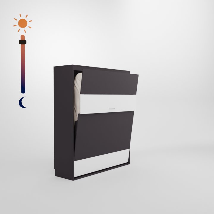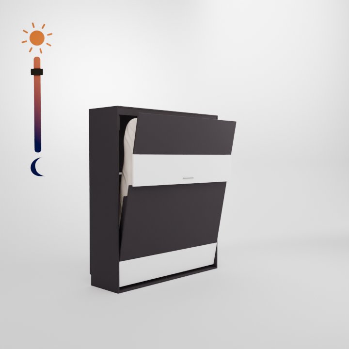 Fabriqué avec des matériaux robustes et équipé d’un mécanisme sécurisé et fluide (ressorts, vérins ou motorisation), le lit armoire Reverso reste stable et facile à manipuler. Il accueille un matelas confortable de taille standard et se fixe solidement au mur pour une sécurité optimale. En journée, il devient un meuble design, parfait pour structurer les petits espaces sans compromis sur le confort.