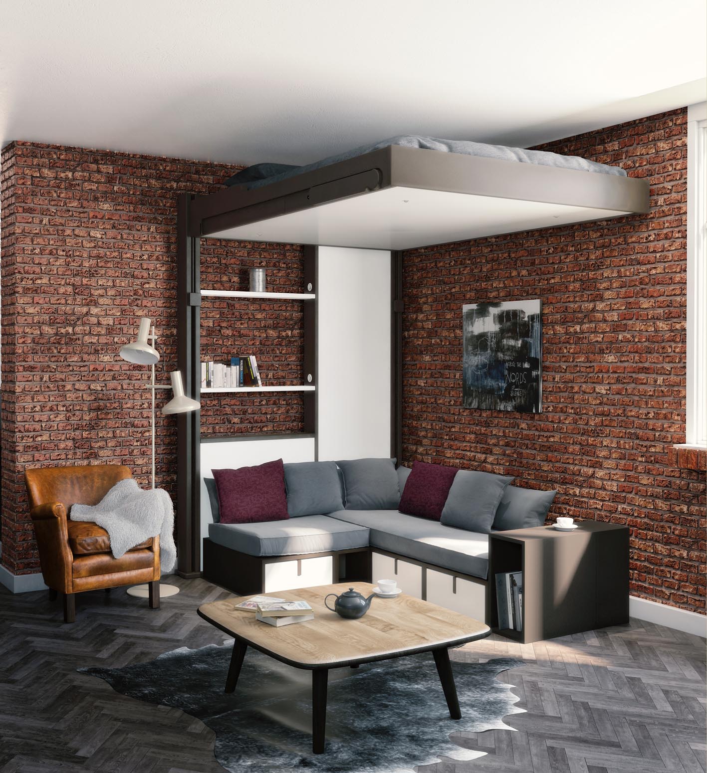 Gain de place optimal : le lit se relève pour libérer un espace de vie fonctionnel