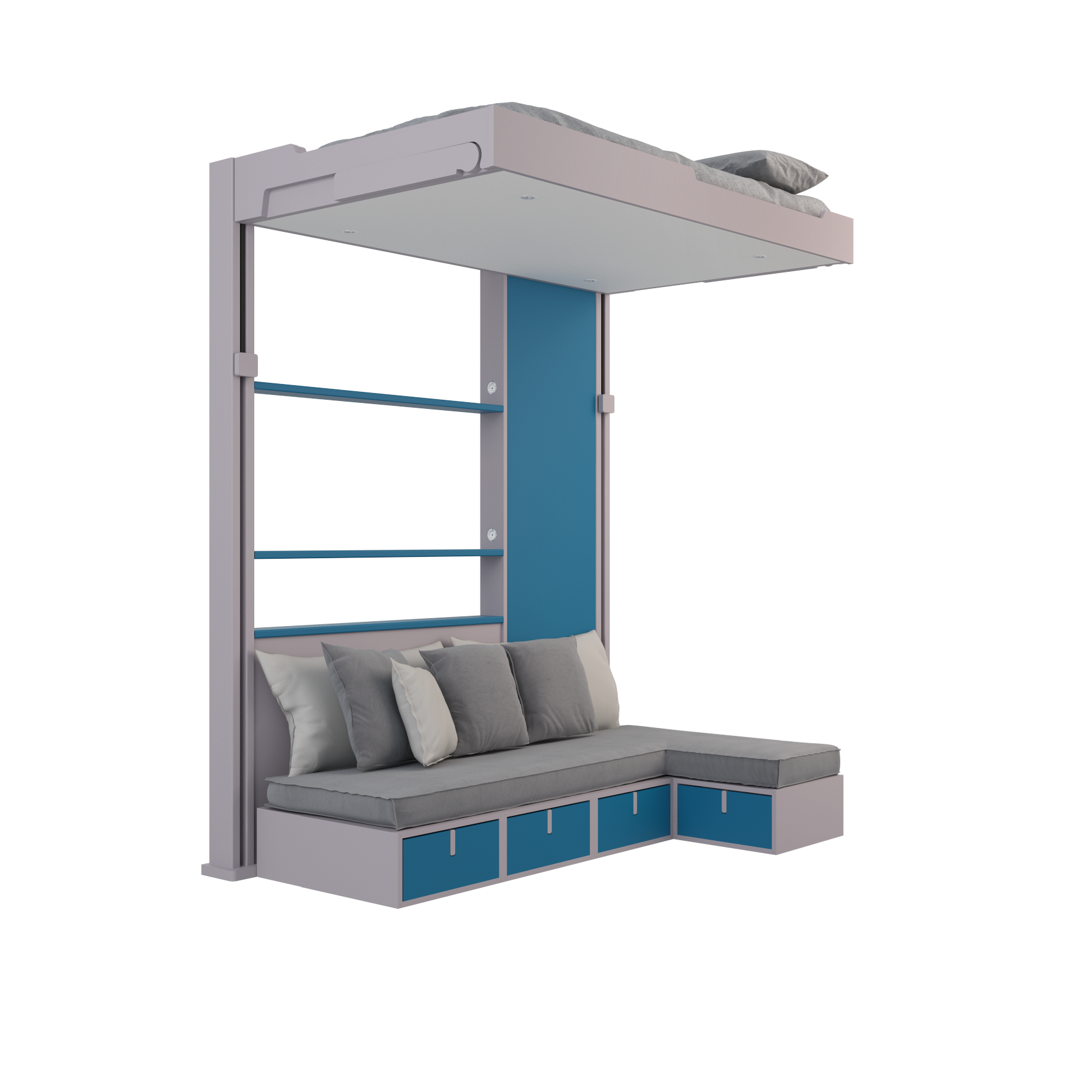 Le lit escamotable Banquette angle Décalé est la solution idéale pour optimiser l’espace dans une chambre, un studio ou un petit appartement. Grâce à son mécanisme fluide, le lit se relève au plafond et libère un espace de vie fonctionnel en quelques secondes. Associé à une banquette en angle, il transforme votre pièce en salon cosy pendant la journée.