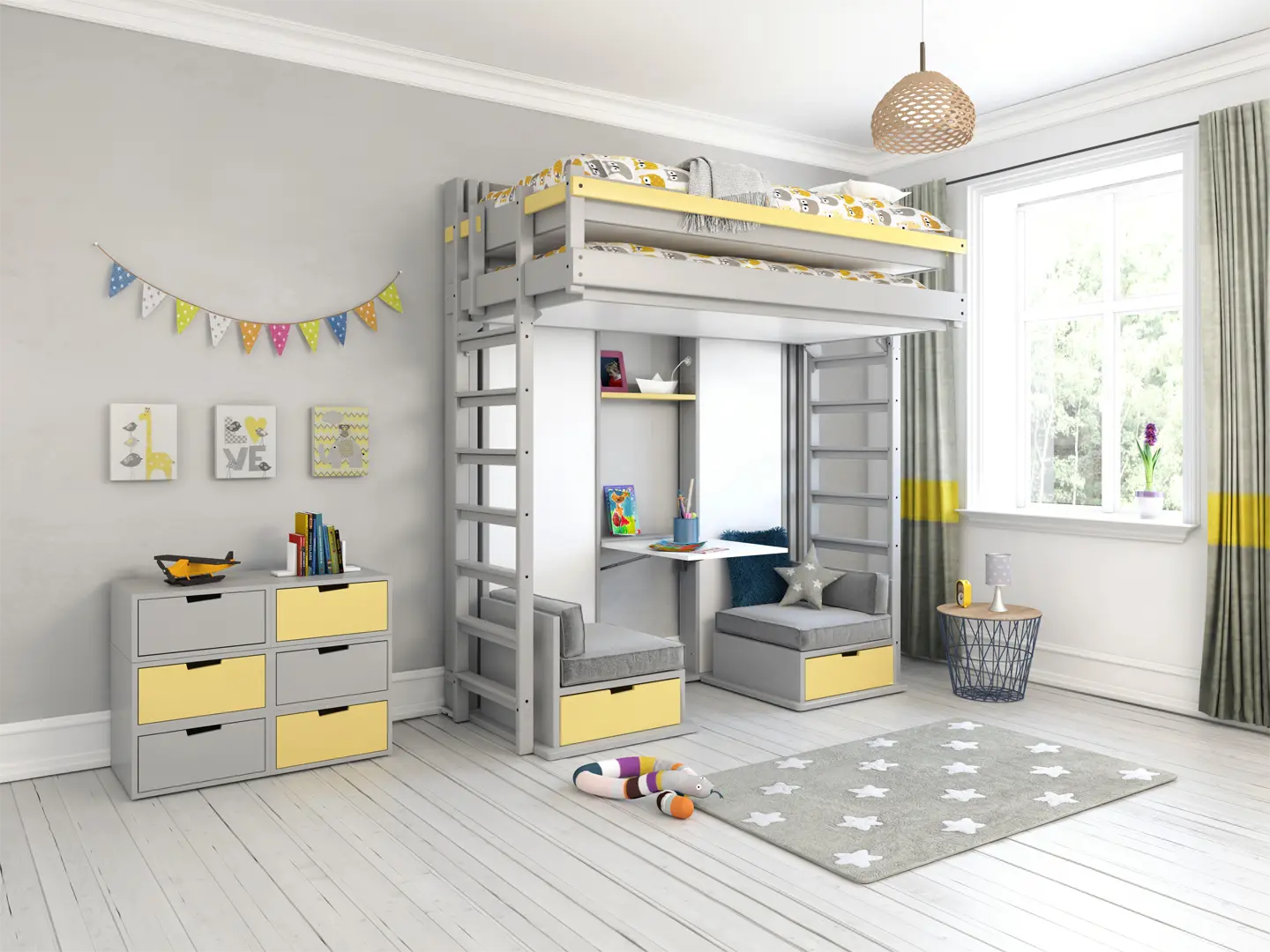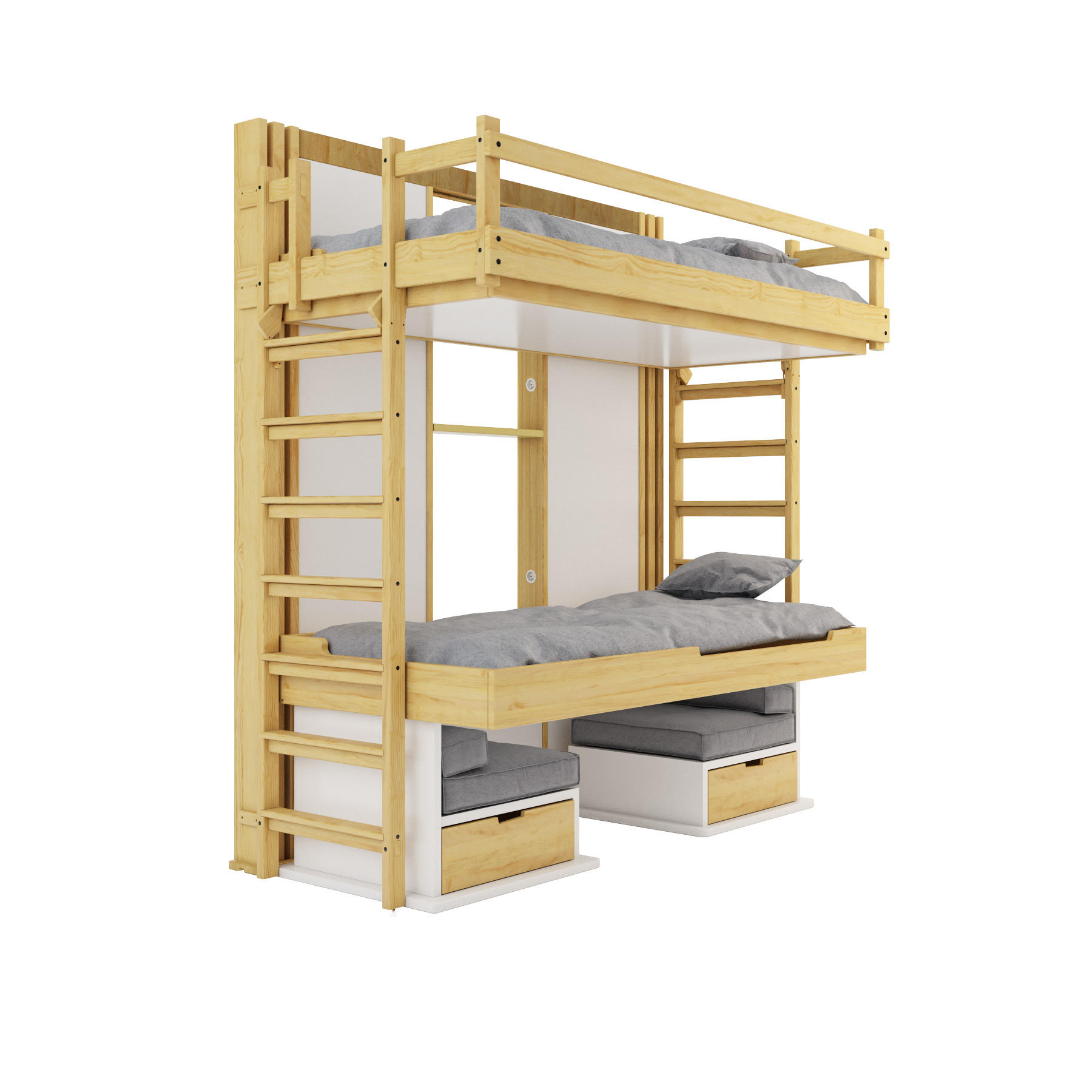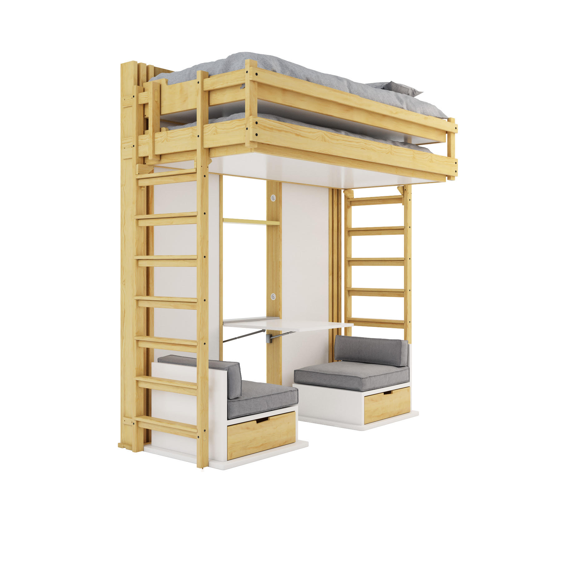 Les escaliers peuvent inclure des tiroirs ou des casiers, maximisant encore le gain de place. Tous les accès sont conçus pour garantir la sécurité, la stabilité et le confort, que ce soit pour un adulte ou un enfant. Avec Espace Loggia, chaque détail est optimisé pour que l’usage quotidien reste simple, sûr et élégant.