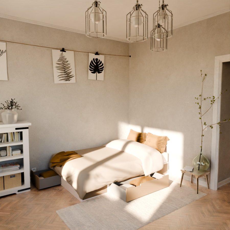 Gain de place intelligent : exploitez l’espace sous le lit pour y glisser vêtements, linge de lit, valises, livres ou objets encombrants