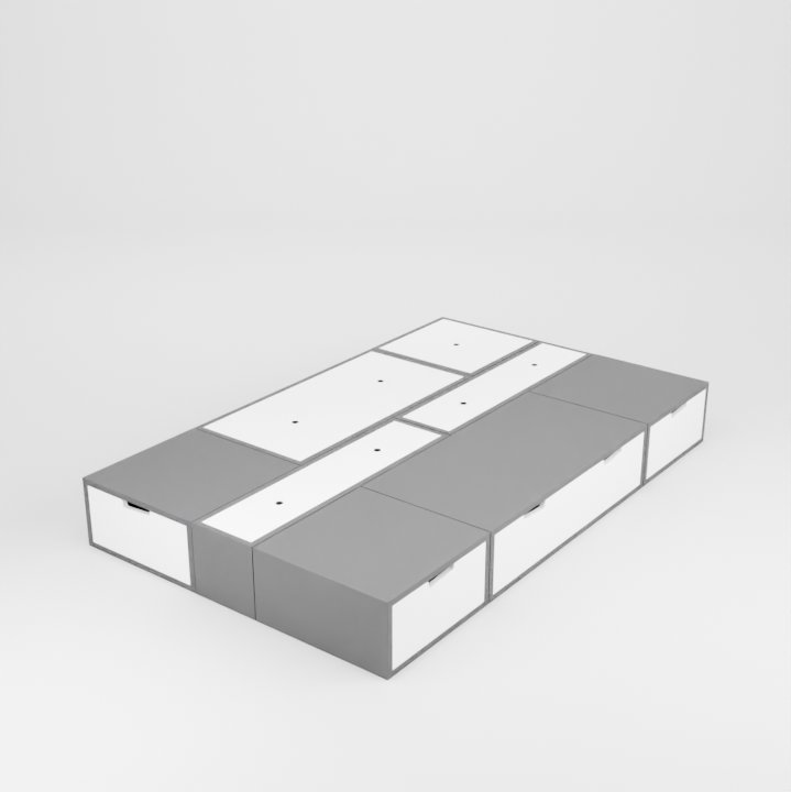 Les rangements sont accessibles, robustes et pensés pour une utilisation quotidienne. Brick s’adresse à ceux qui recherchent du mobilier gain de place, fonctionnel et discret, sans compromis sur la qualité.