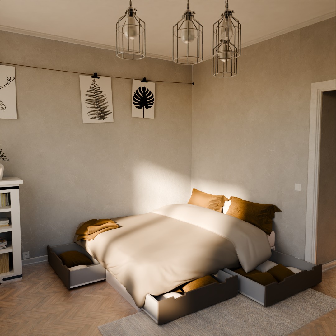 Gain de place intelligent : exploitez l’espace sous le lit pour y glisser vêtements, linge de lit, valises, livres ou objets encombrants