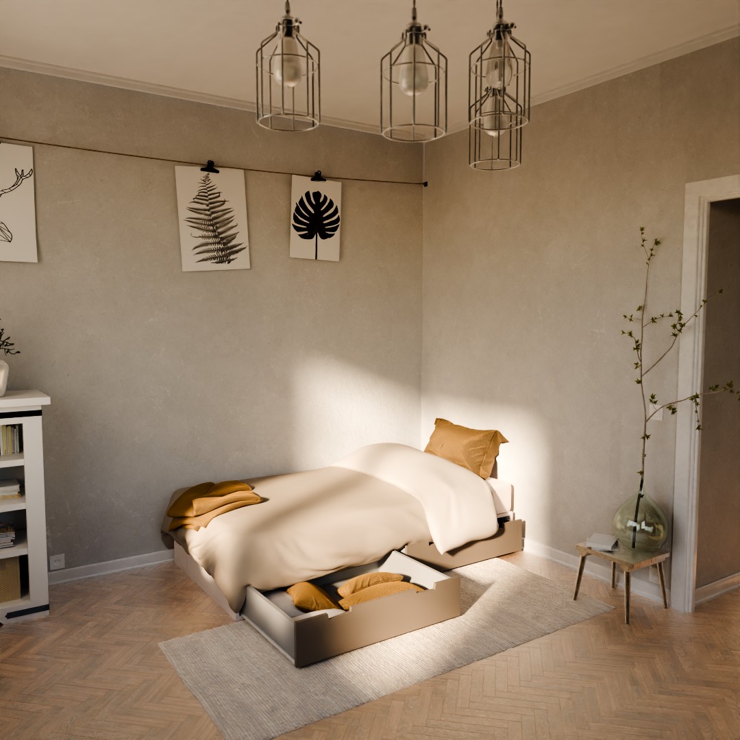 Gain de place intelligent : exploitez l’espace sous le lit pour y glisser vêtements, linge de lit, valises, livres ou objets encombrants
