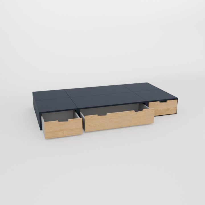 Les rangements sont accessibles, robustes et pensés pour une utilisation quotidienne. Brick s’adresse à ceux qui recherchent du mobilier gain de place, fonctionnel et discret, sans compromis sur la qualité.