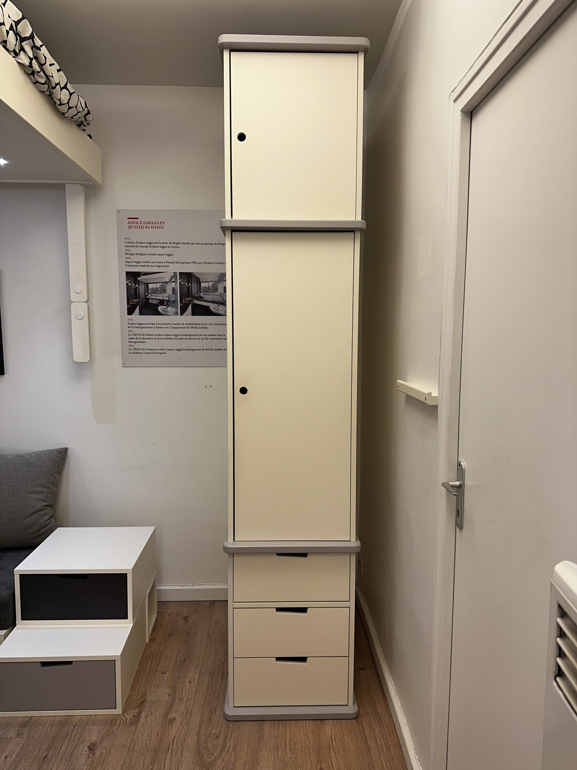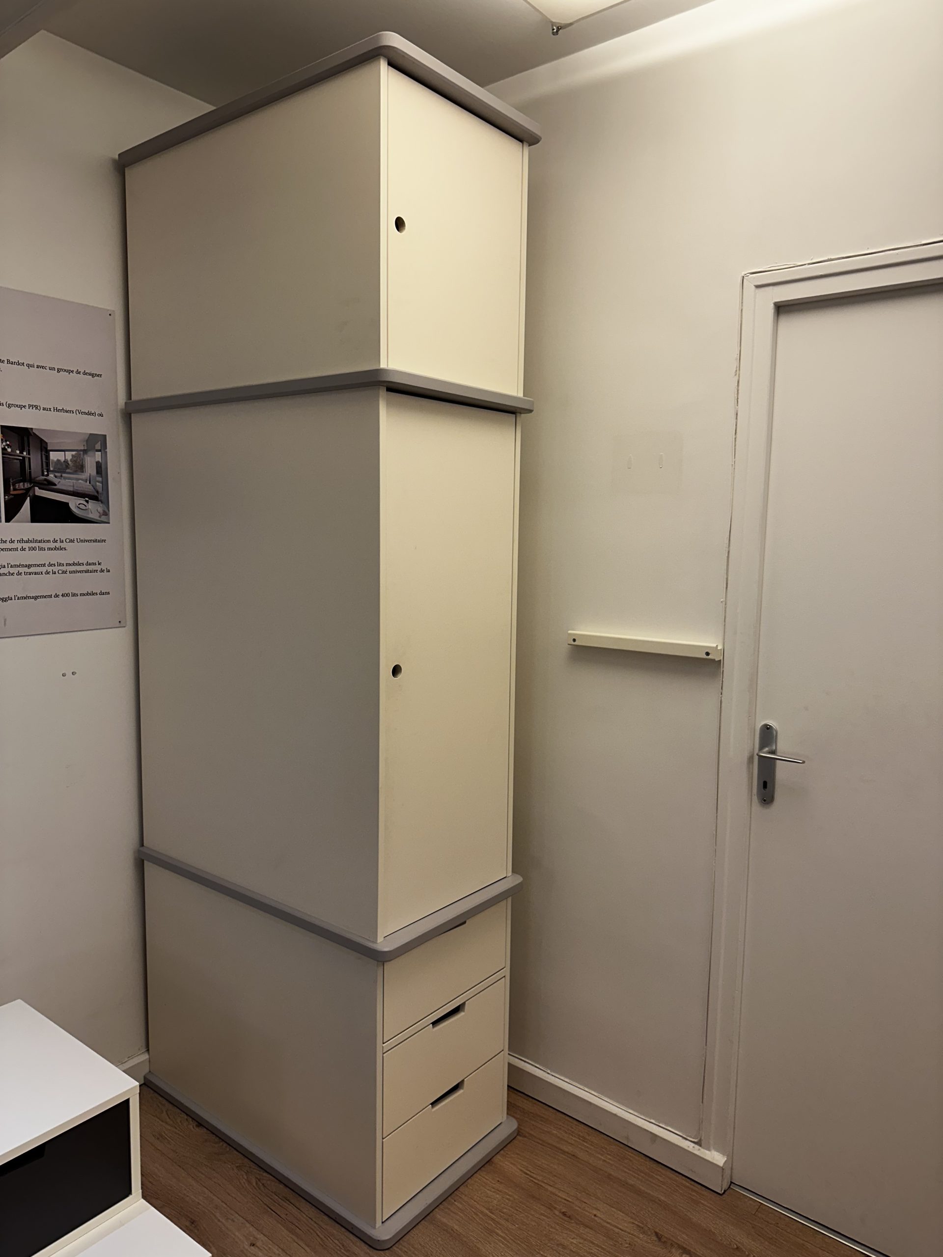Son principal atout reste sa modularité. L’armoire triptyque s’ouvre partiellement ou complètement selon la situation. Vous accédez rapidement à vos vêtements, linge ou accessoires, tout en conservant une impression d’ordre. En la refermant, vous libérez l’espace et conservez une ambiance épurée.
